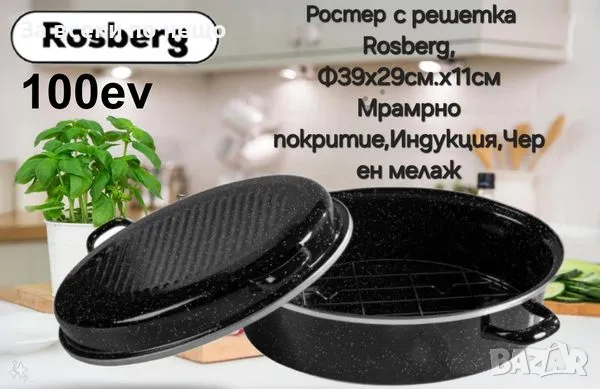 Ростер с решетка Rosberg R54523B, Ф39x29см., Емайл, Черен меланж.
