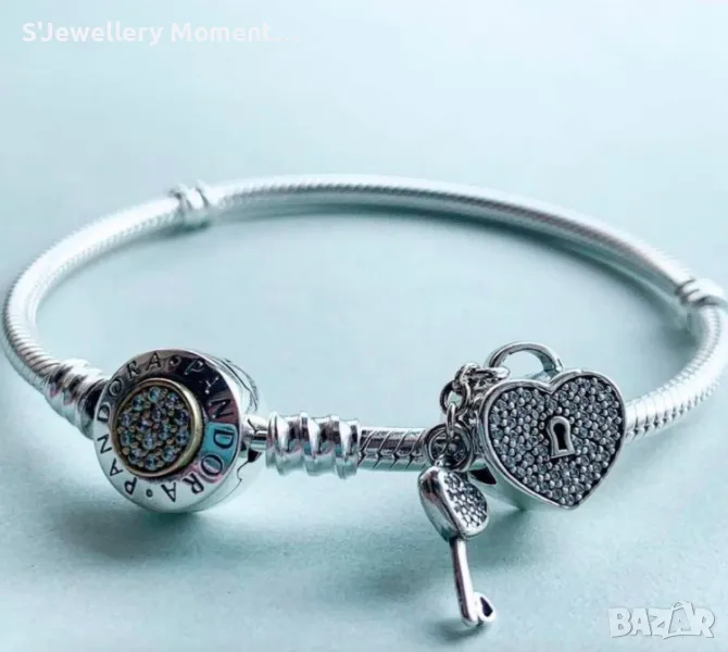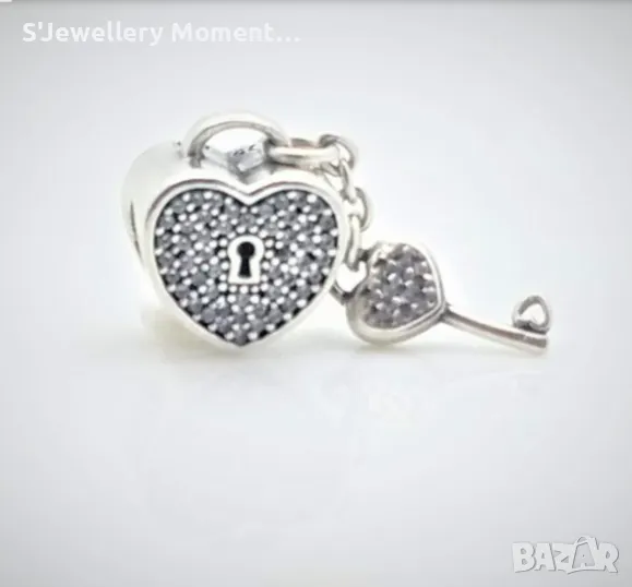 Сребърен елемент PANDORA 925 Pavé Padlock Heart & Key Charm → Обява 47009343