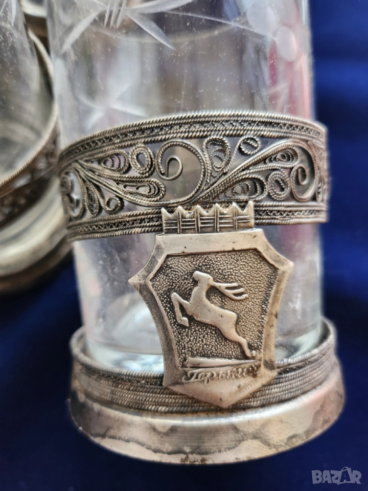 1) Комплект от 6 броя подстакани от мелхиор.