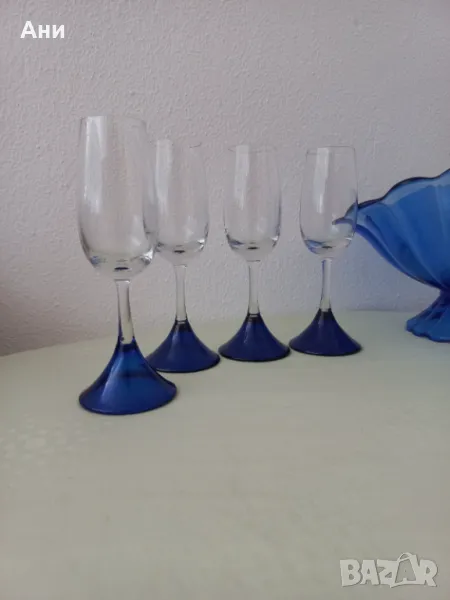 Чашите за шампанско са високи 20,5 см, 180 мл. Те са 10 бр, като 4 от тях са с нюанса на чашите за вино, а 6 са един тон по светли.
