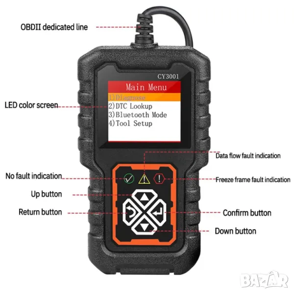 Full OBD2 EOBD автомобилен диагностичен кодочетец CY3001