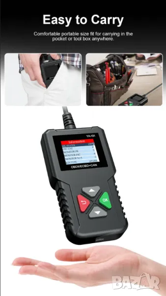 Дисплеят и лесните за използване клавишни комбинации правят YA101 идеален инструмент както за любители, така и за професионални техници.