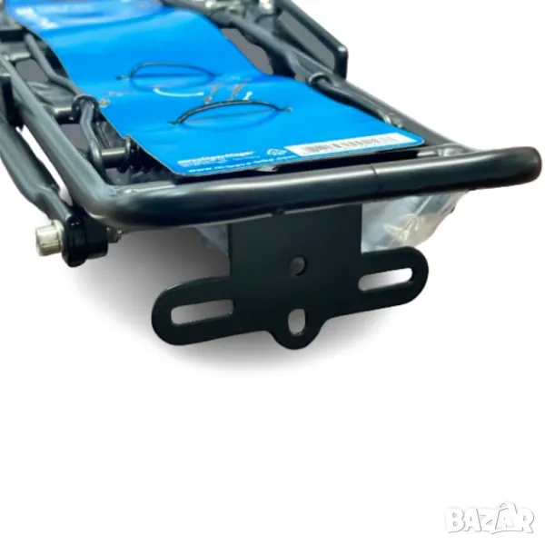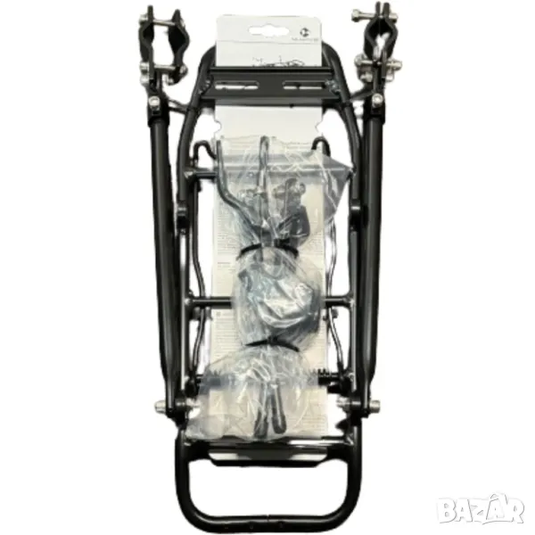 Този багажник разполага с универсален монтажен комплект, предназначен да се монтира безпроблемно на всички видове рамки, включително велосипеди с дискови спирачки. Разполага с регулируеми странични релси, които могат да се променят по дължина и ъгъл, което позволява персонализирано прилягане за различни размери и настройки.