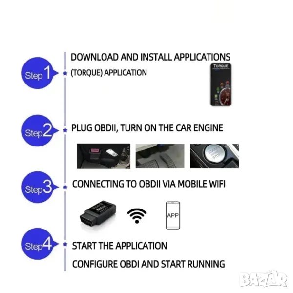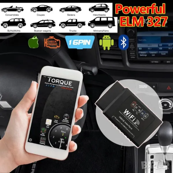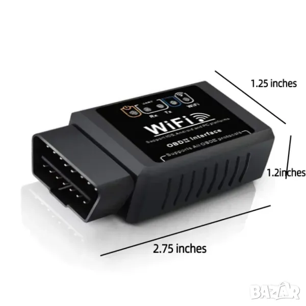 • Wi-Fi свързаност : Включва се към OBD II порта на вашия автомобил и чрез Wi-Fi комуникира с вашия телефон или друго смарт-устройство, елиминирайки нуждата от кабели и улеснявайки използването.