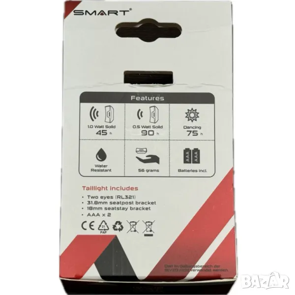 Мигаща Задна Двойна Светлина За Велосипед SMART RL321 + Безплатна доставка