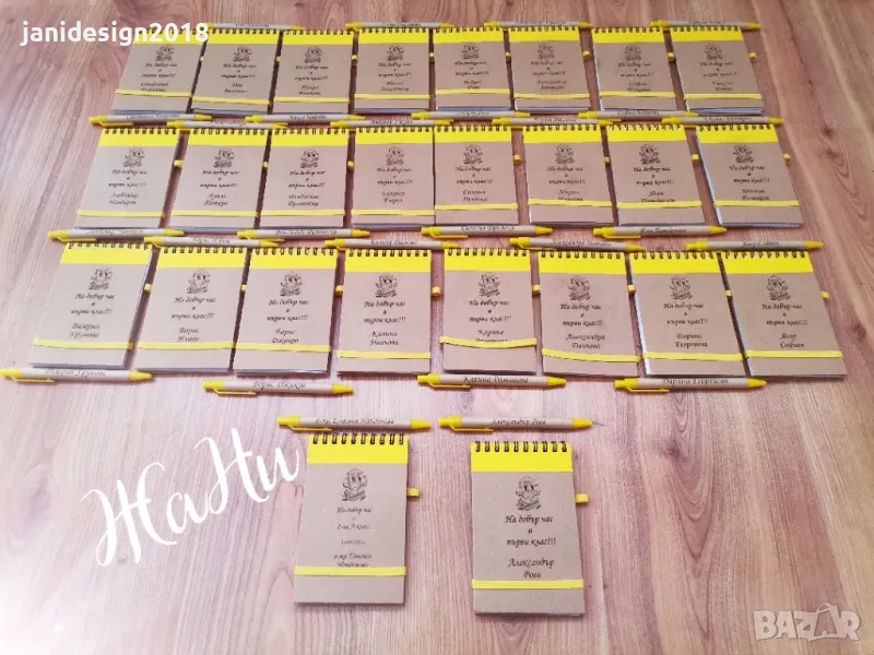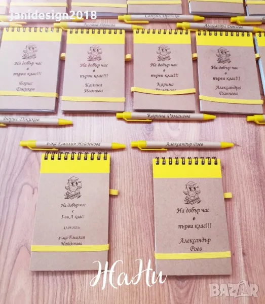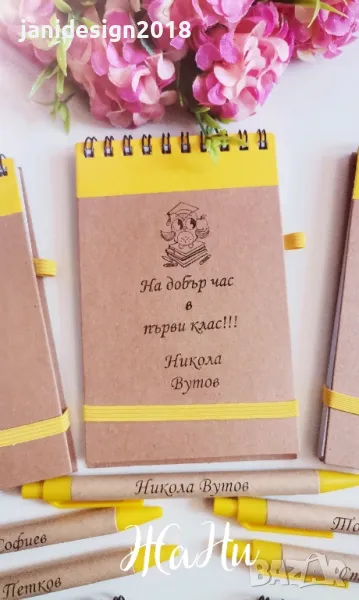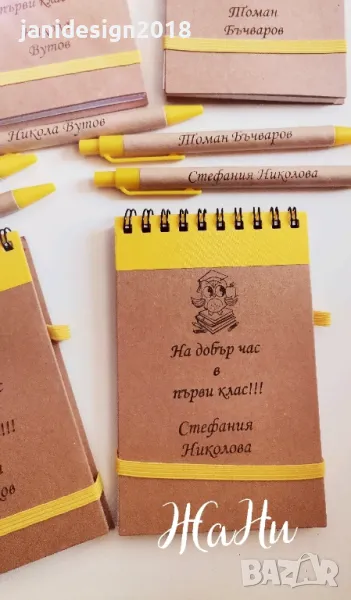Подаръчен комплект гравиран тефтер и химикал с име за първи учебен ден → Обява 47010822