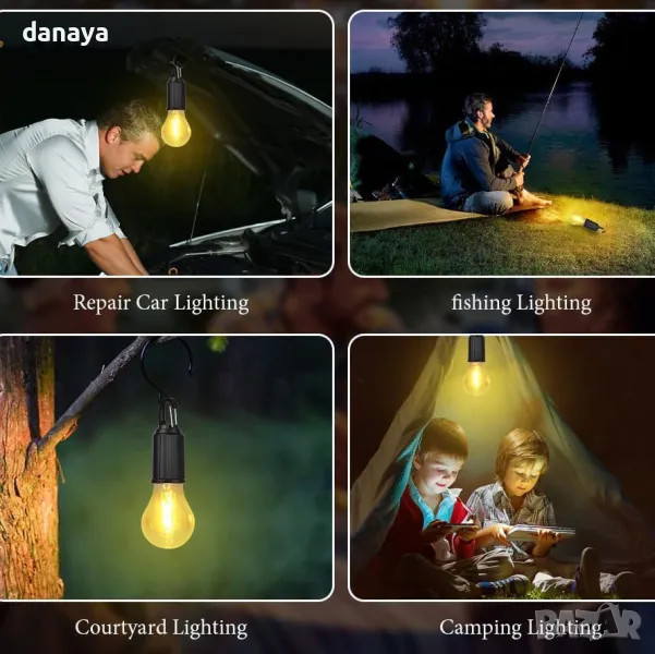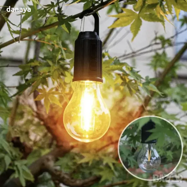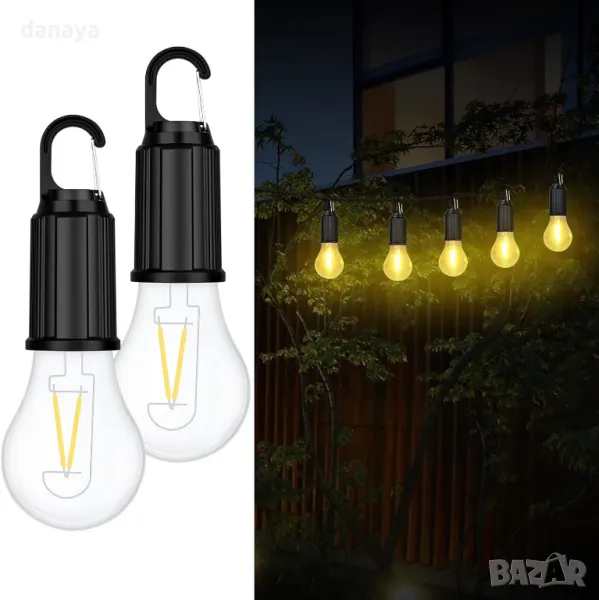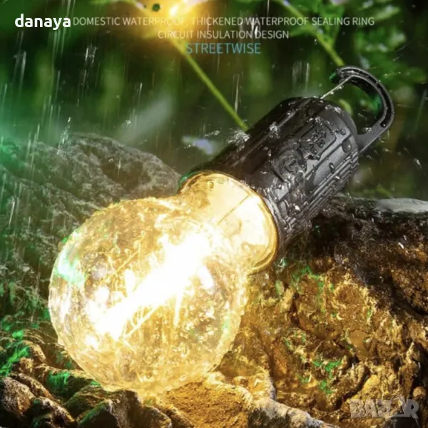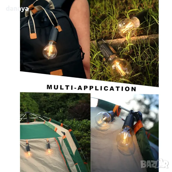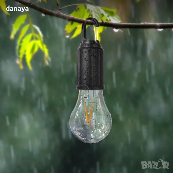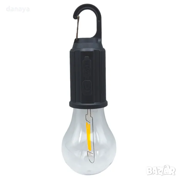 LED лампа за къмпинг s USB зареждане. Крушка с кука, която свети в топла жълта светлина, създава уютна атмосфера за вашето къмпинг изживяване.