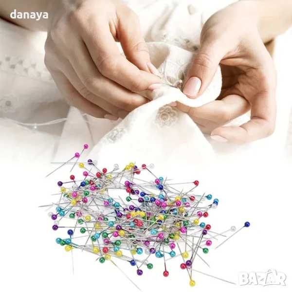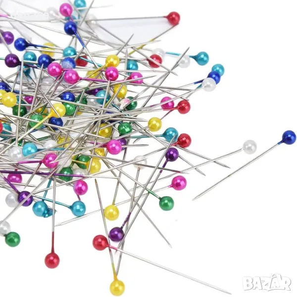 Шивашки карфици с цветни глави. Тези карфици осигуряват лесно и безпроблемно проникване в различни материи. Идеални са за фиксиране на платове преди шиене, маркиране на кройки или временно прикрепяне на различни елементи. Може да се използват и за различни арт проекти.