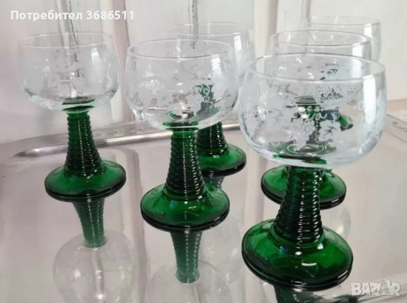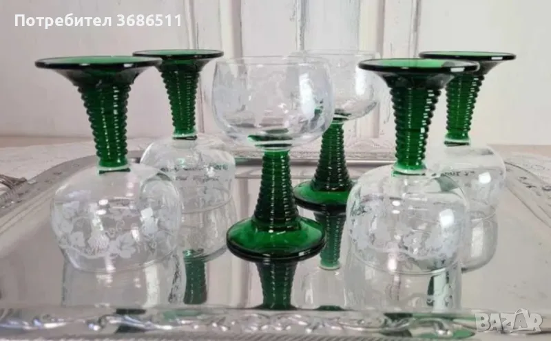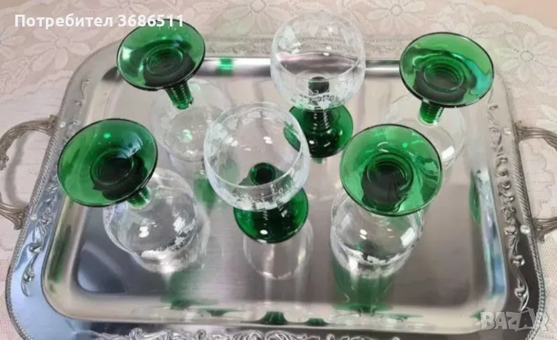 Сервиз от шест кристални чаши с великолепна флорална украса. Сервизът е старо френско производство за немския пазар. Неупотребяван. Вместимост на чашката - 0.1 л.