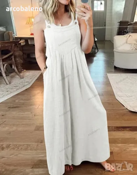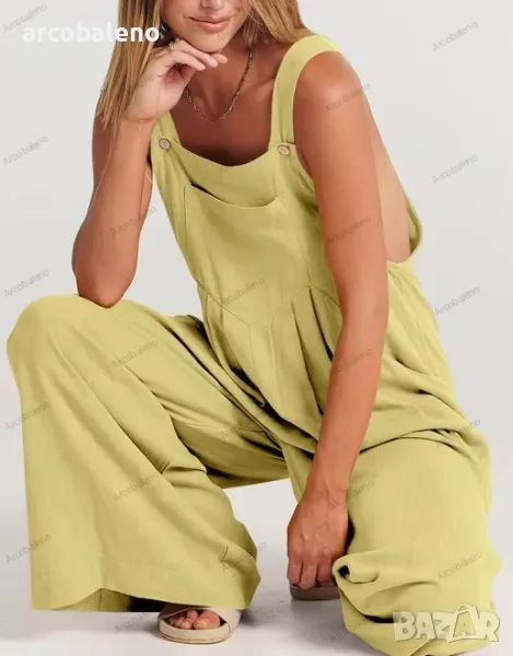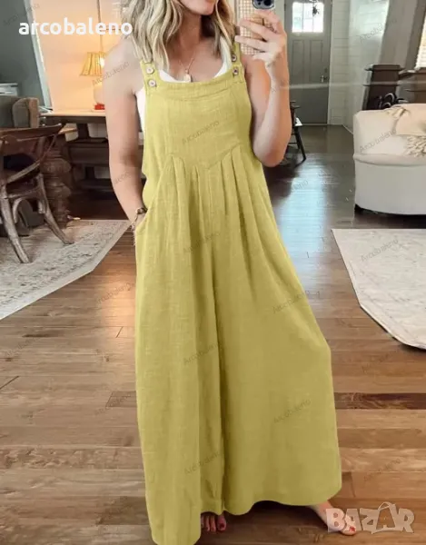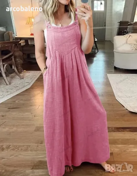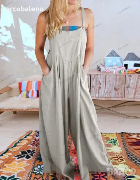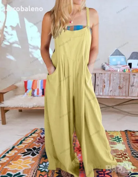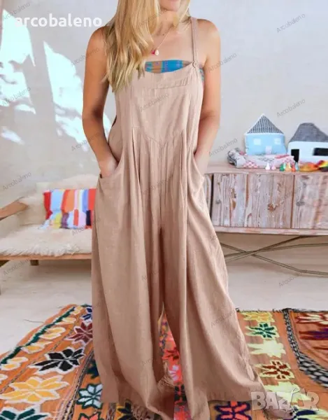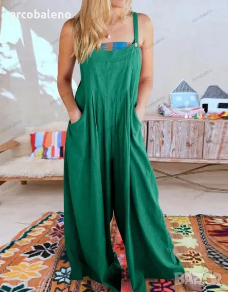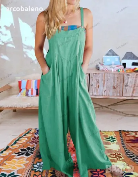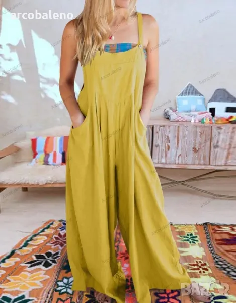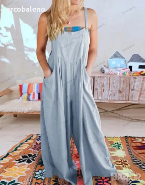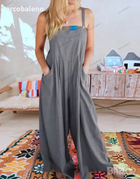 Дамски широк ежедневен гащеризон от една част с широки крачоли, 12цвята