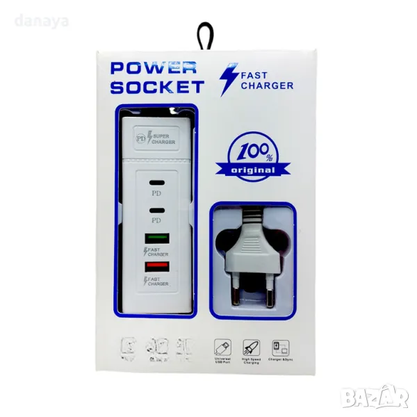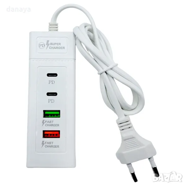 зарядно за телефон смартфон тип С Fast charge type C USB. Quick Charge технология за бързо зареждане, която позволява да заредите до 4 устройства едновременно.