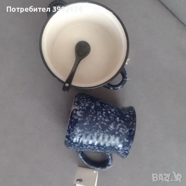 Много красив комплект от купичка за супа, чаша за кафе и лъжица.