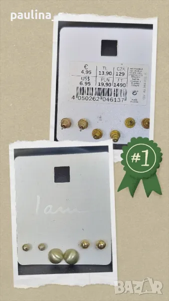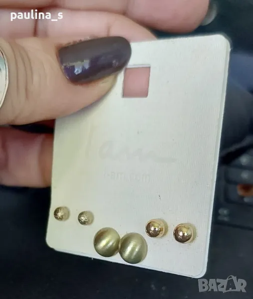 1. Колаж / Маркови обеци "I am". Обеци от стомана - топчета на щифт, със сигурни стопери. Цената е крайна и за бройка 8,99лв. Общата цена е 24,99лв.
