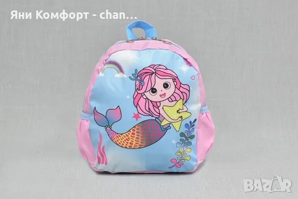 Детска раница от текстил модел 2023 за момичета и момчета е с интересен принт с картинки, на които децата се радват: русалка, еднорог, динозавър, дракон и други животни. Раницата е с едно отделение с преграда и два странични джоба, с дръжка за ръка и регулируеми презрамки. Изключително удобна с подплътени дръжки за носене, допълнително подплатен заден панел.