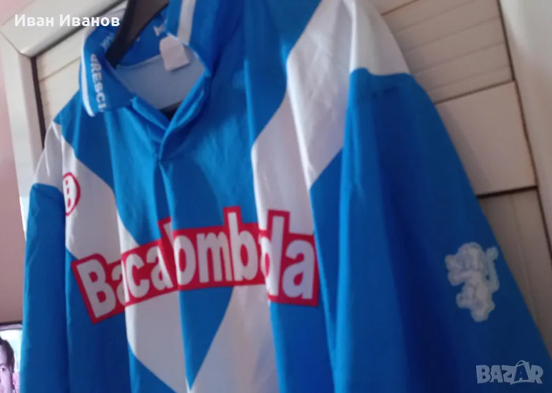 Оригинална фланелка на Бреша на великия Роберто Баджо в перфектно състояние, не е обличана, само е съхранявана, всички етикети са налични. Тениската е закупувана от 2002г. от Mario Rigamonti Stadium по време на мача между Бреша и Ювентус. Бреша победиха с 2:0. Уникален мач. Размер ХЛ.