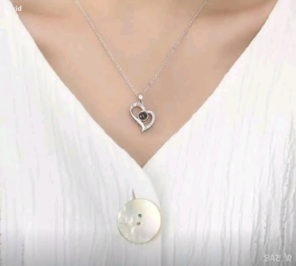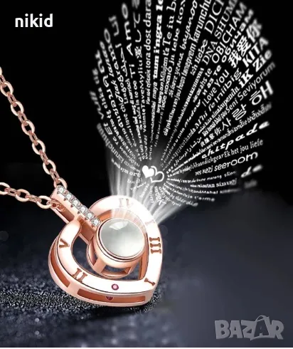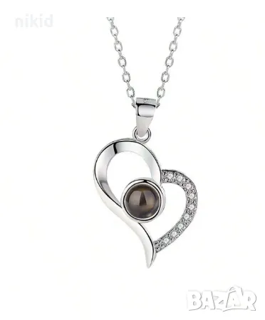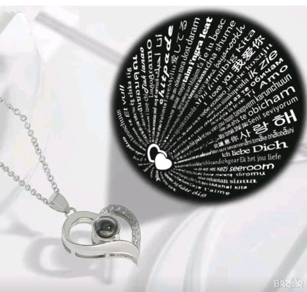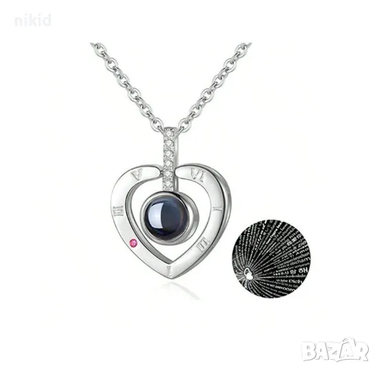 сребристо Магическо колие Сърце с текст I Love You ОБИЧАМ ТЕ на 100 езика → Обява 47019693