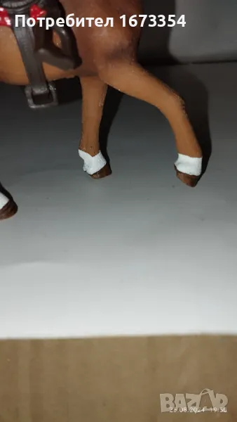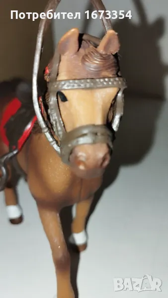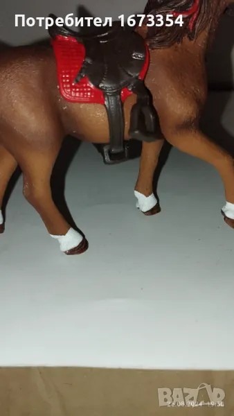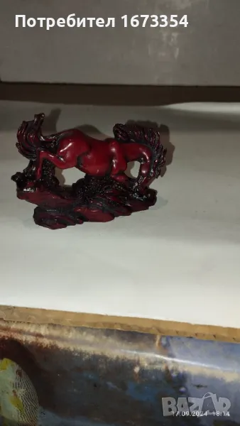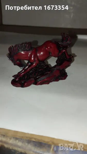 Продавам статуетка КОНЧЕ много красива пластмасова ,но перфектна изработка като истинско конче с високо качество със стреме ,юзда, самар ,който може да се сваля с размери