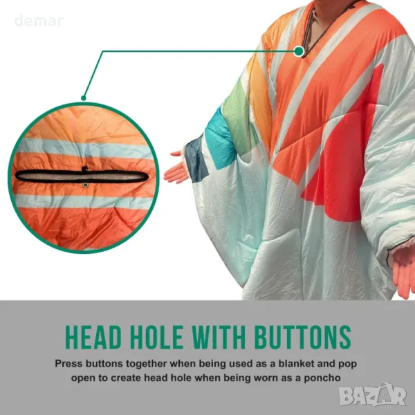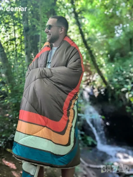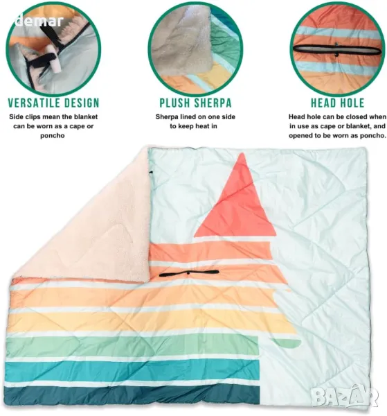 OLPRO Blanko Универсално плюшено одеяло, пончо, наметало с подплата от ярък смърч, за къмпинг, излет