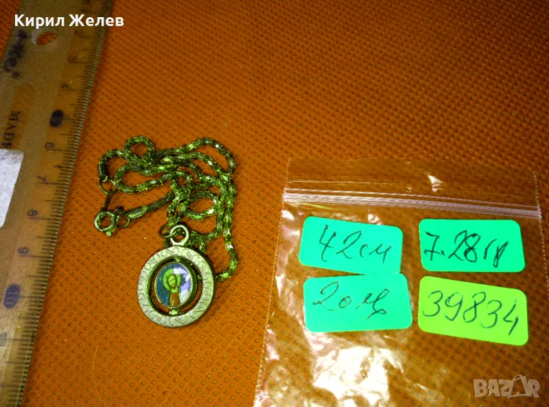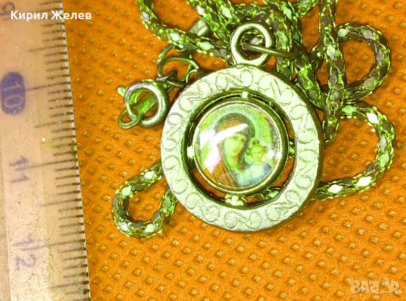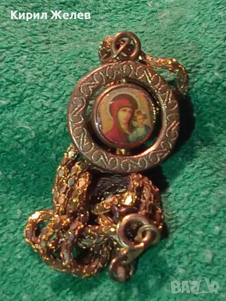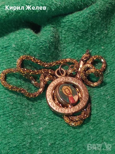 СТАРА ЗЛАТИСТА ДВУСТРАННА ПРАВОСЛАВНА ИКОНКА със ЗЛАТИСТО СИНДЖИРЧЕ 39834