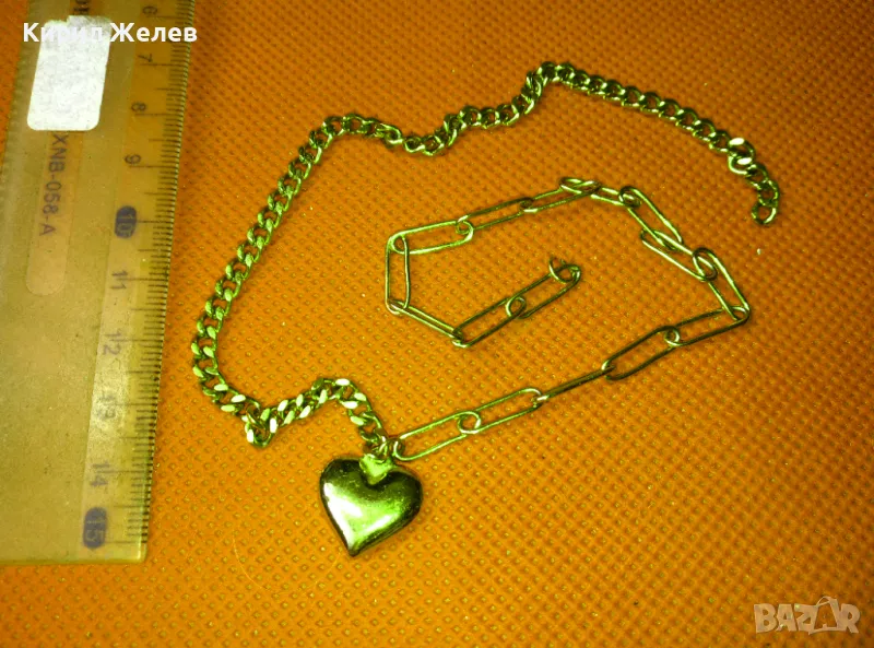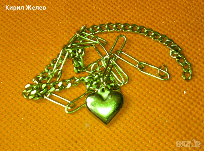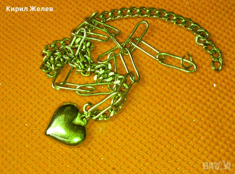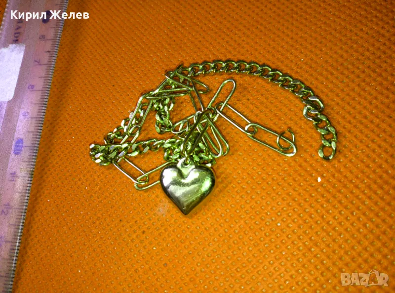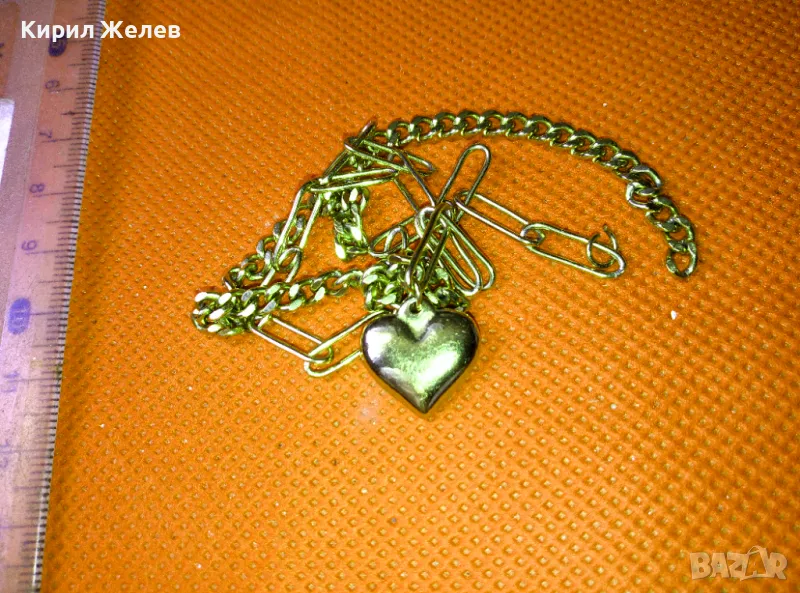 ИЗИСКАНО ПОЗЛАТЕНО МЕДНО КОЛИЕ с АРТ ВИСУЛКА СЪРЧИЦЕ с НУЖДА от ЗАКОПЧАЛКА 37379