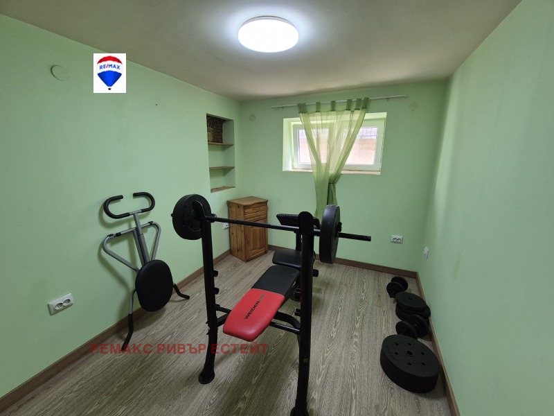 С вътрешно стълбище се стига до приземния етаж който е с площ от 45 кв.м., там са разположени две спални помещения, баня с тоалетна и перално помещение. По вътрешното стълбище се стига и до тавана на имота, който може да се обособи за живеене. Имотът е след множество подобрения, подменена ВиК и ЕЛ инсталации във всички помещения. Отоплението и охлаждането е решено с климатици, има газ вкарана вътре в имота и камина на твърдо гориво. Имота е с подменена ПВЦ дограма на всякъде и вътрешни алуминиеви врати, Подовите настилки са от ламинат и теракота.