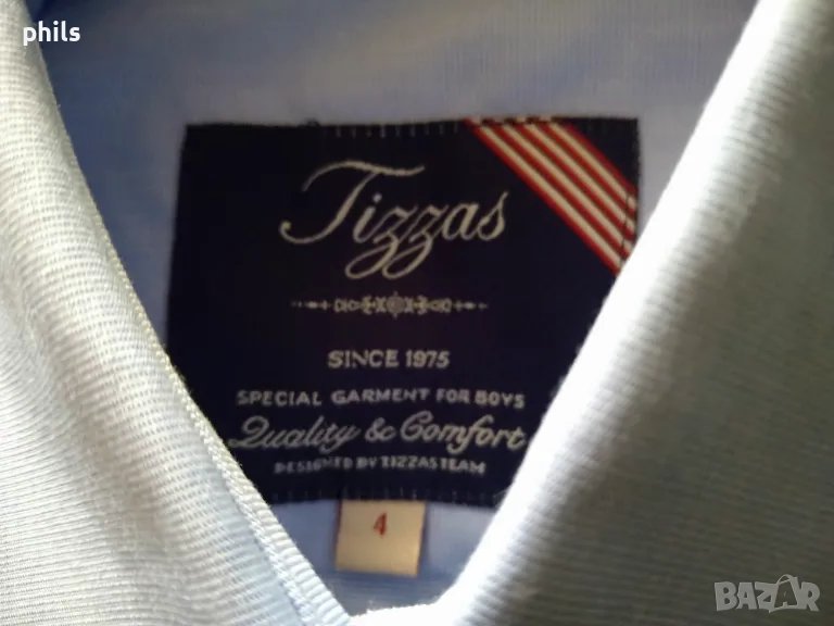 Нова елегантна риза за момче на испанската марка Tizzas. За възраст 4 г. Дължина 48 см., ръкав.35 см Без коментар.!