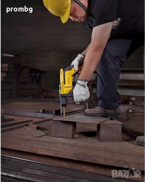 ударна бормашина Stanley, внос от Белгия. Функция за пробиване в тухли и зидария. Променливи обороти със смяна на посоката на въртене. Гумен протектор на корпуса. Ергономична форма за удобство на работника. Бутон за заключване за управление с една ръка и безопасност на потребителя. Странична дръжка за осигуряване на допълнителен контрол. Спецификации: Входяща мощност, W: 700
