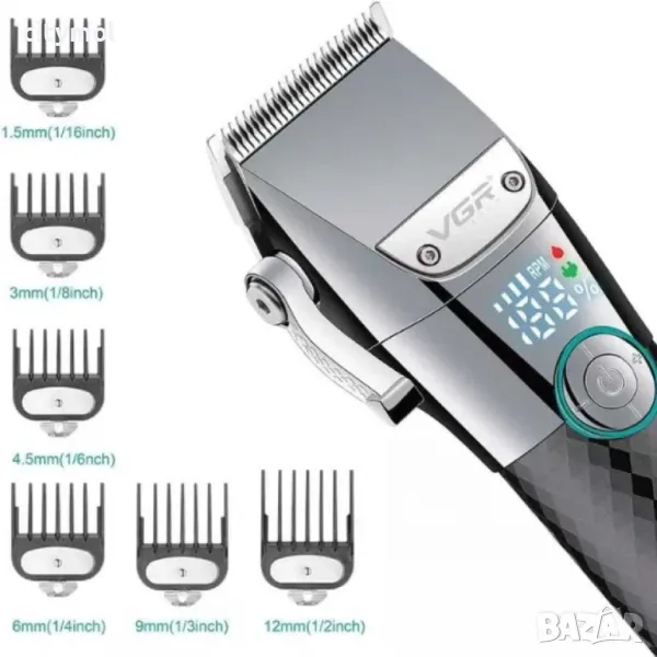 В пакета са включени една машинка за подстригване, шест водещи гребена (1,5 мм, 3 мм, 4,5 мм, 6 мм, 9 мм и 12 мм), предпазител за ножа, USB кабел за зареждане, основа за зареждане, чиста четка и ръководство за употреба . Тези основни аксесоари допълват изживяването ви при подстригване, правейки го по-безпроблемно и приятно.