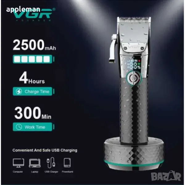 Оборудван с мощна литиево-йонна батерия от 2500mAh, тази машинка за подстригване осигурява впечатляващите 300 минути време на работа. Възможността за бързо зареждане, комбинирана с USB-тип C кабел, гарантира, че можете удобно и безопасно да заредите машинката за подстригване само за 4 часа. Бъдете спретнати и готови, когато имате нужда.