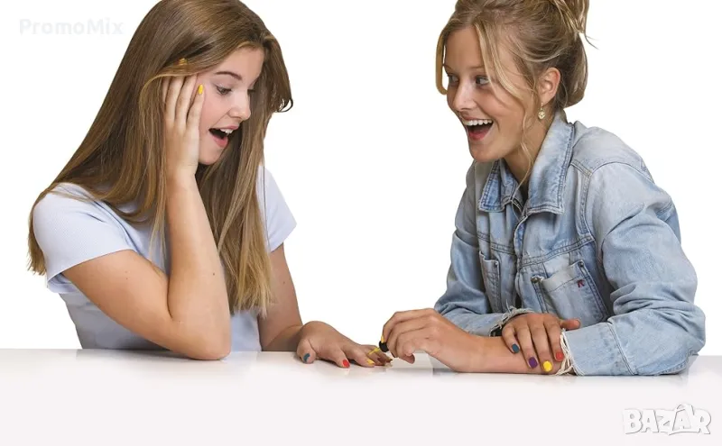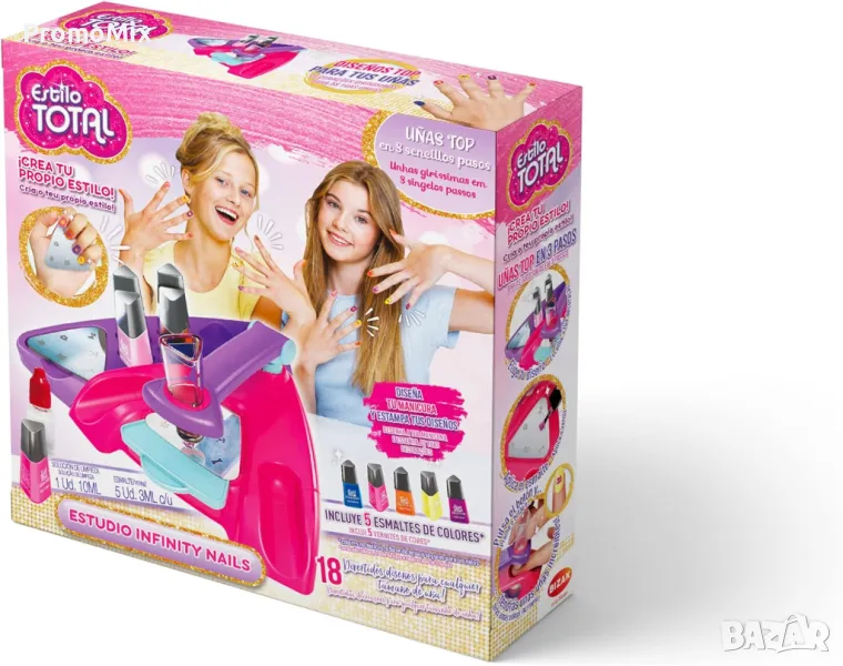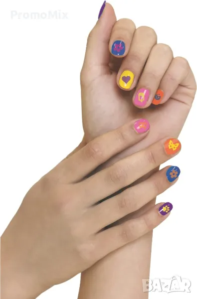 Студиото разполага със станция за по лесно поставяне на печата на декорациите. Подарете часове на забавление и разкрасяване на децата с комплекта маникюр Bizak 63270002.
