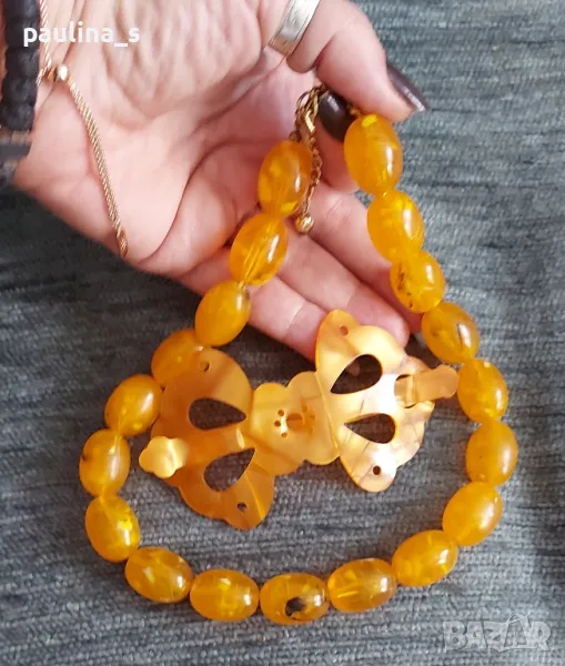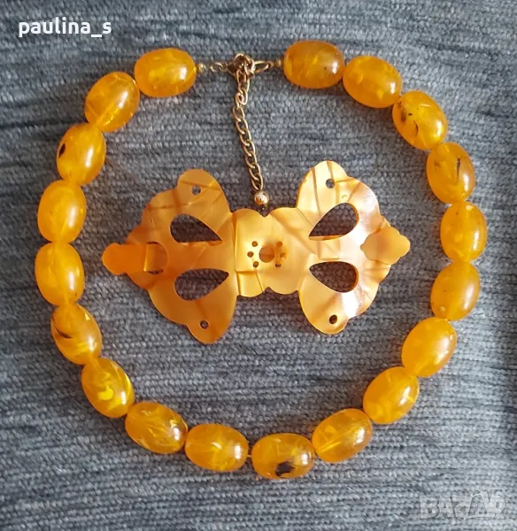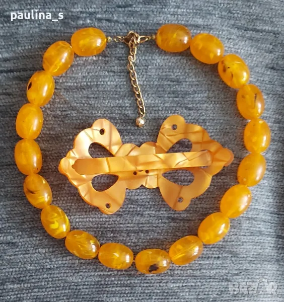 Винтидж / Комплект от стари руски бижута - шнола и гердан. Цената е крайна 29,99лв. Мащабирането е на дланта, дължина на наниза 42см, удължителя съм го слагала аз. Шнолата е нова. Не се делят, не знам какъв е материала.