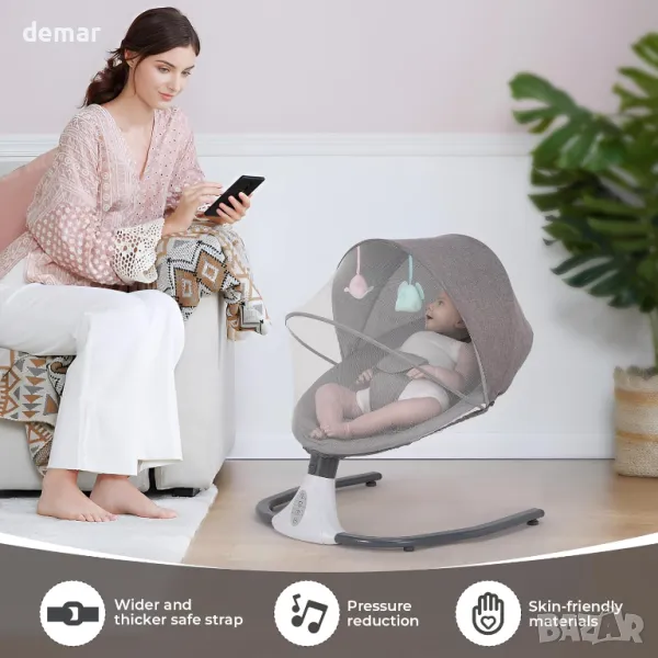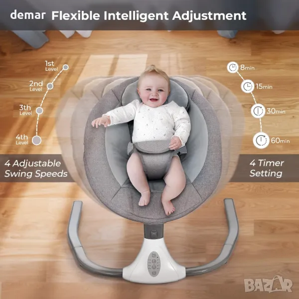 Бебешки стол-люлка с дистанционно управление, 5 скорости, 4 таймера