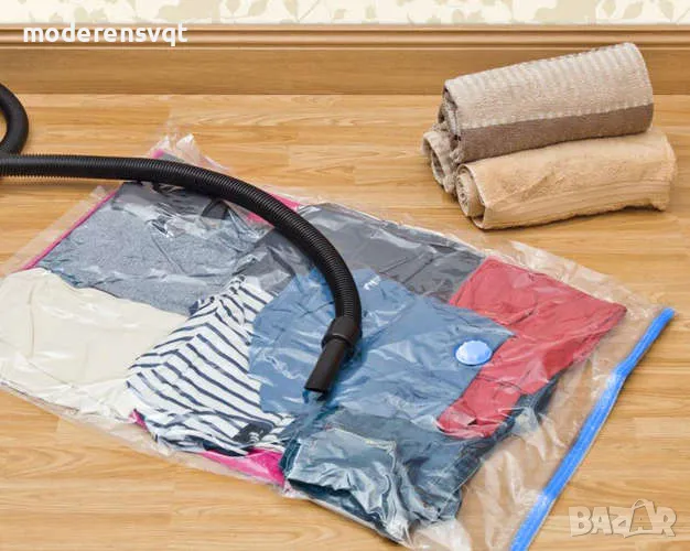СПЕСТЯВАНЕ НА МЯСТО - просто опаковайте нещата си в чанта. Торбичка за прахосмукачка След като изсмуче въздуха с обикновена прахосмукачка, тя намалява обема си с до 80% . Позволява ви да спестите много място.