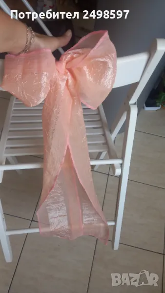 Панделки цвят праскова от материя, която не се мачка - налични около 100 броя. Ширина 18 - 20 см. дължина - 2.20 лв. Цена 4 евро / 1 бр.