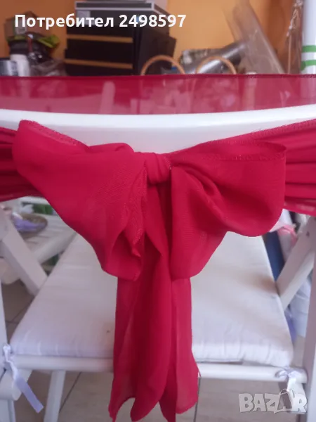 Панделки цвят червено от материя шифон - налични около 100 броя. Ширина 18 - 20 см. дължина - 2.20 лв. Цена 4 евро / 1 бр.