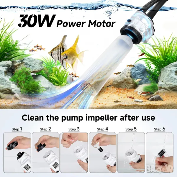 AQQA 8-в-1 електрически почистващ уред за аквариум, 30 W