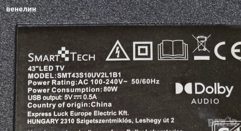 Частите са свалени от телевизор със счупена матрица SmartTech SMT43S10UV2L1B1