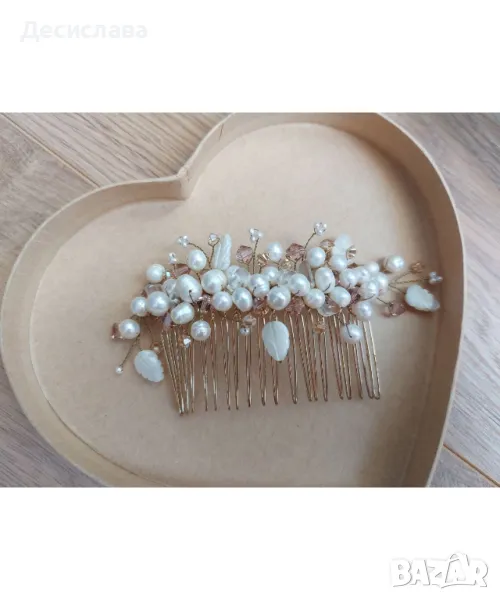 Гребен аксесоар за коса с перли и кристали от Сваровски → Обява 47030918