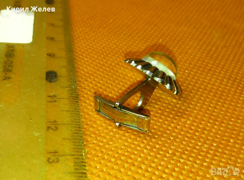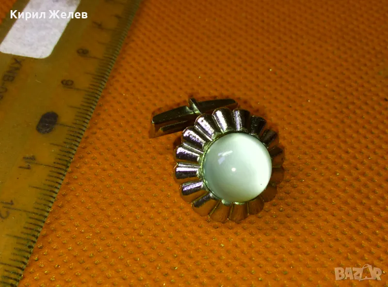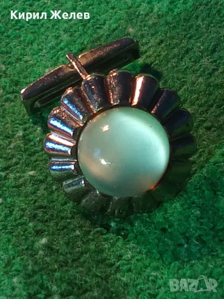 СТАРО СРЕБРИСТО РЕТРО КОПЧЕ За РЪКАВЕЛИ БУТОНЕЛ с ШЛИФОВАН ЛУНЕН КАМЪК 44432