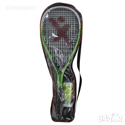 Комплект за спийдбадминтон MAX. Съдържа две ракети, три пера и калъф за удобно съхранение и пренасяне. Подходящ за игра на открито, на почивка, в парка, на плажа. Спийдминтон дава възможност да се преодолее вятъра като пречка при игра на открито. Перата са по-тежки от тези за федербал и летят по-бързо. Ракетите са с форма като на тези за скуош, които са по-тежки от стандартните за федербал. Дължина ракета - 59 см. Размери глава - 35х22 см. Дебелина рамка - 1.8 см. Тегло ракета - 180 г. Дължина грип - 14.5 см. Материал ракета - алуминий. Дължина перце - 6 см. Тегло перце - 8 г. Материал перце - PVC. Тегло бруто за комплект - 490 г.