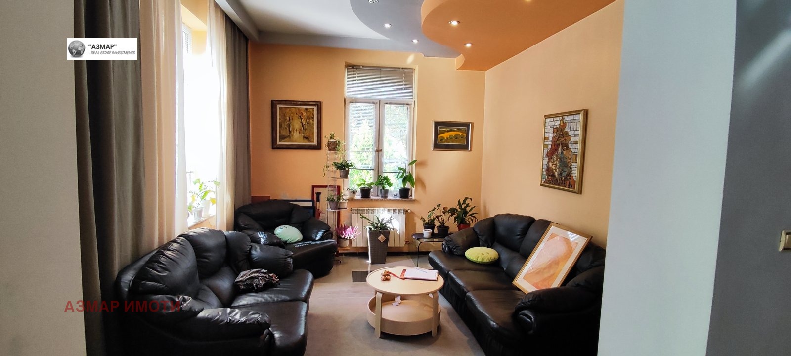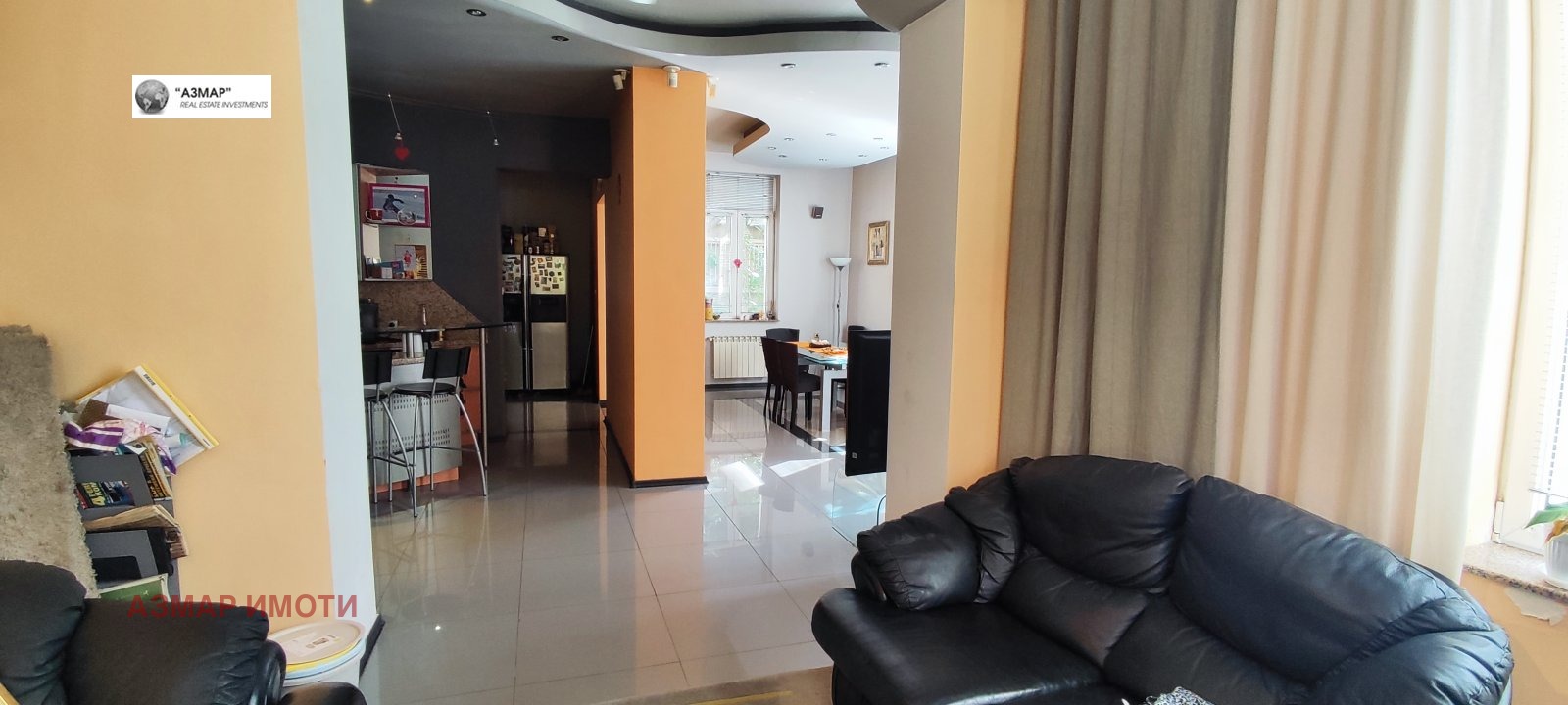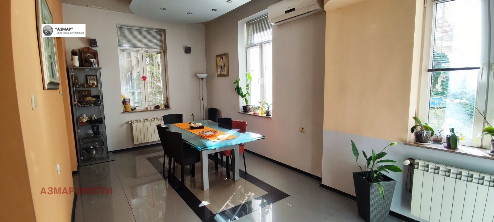 ТОП ОФЕРТА! ЕКСКЛУЗИВНО ПРЕДЛОЖЕНИЕ! ОБЗАВЕДЕНА ! Локално отопление! Къща в идеалния център на София на тиха улица на метри от храм паметника Ал.Невски , бул. Ал.Дондулов и бул.В.Левски. Разположена е във вътрешен двор, в който има още една къща с лице към улицата. Къщата е от 30-те години и е основно реновирана. Към нея има идеални част земя. Сградата е на четири етажа с голяма покривна тераса. В полуподземния етаж са разположени складови и обслужващи помещения, баня с тоалетна, котел и перално помещение. На първия етаж е кухня, трапезария, хол, санитарен възел. На втория етаж има три спални и две бани. Мансардният етаж представлява еднопространствено помещение с обособени функционални кътове и баня. Вътрешната стълба, която обслужва етажите, излиза на обширна покривна тераса -63кв.м. Сградата е преустроена през 2000г. и е изпълнено конструктивно укрепване и основен ремонт. Отвън е топлоизолирана, ПВЦ, покривът е стоманобетон с топло и хидро изолация. Настилки: гранитогрес и естествен паркет. Монтирана охранителна система. За контакти: 0889015784.