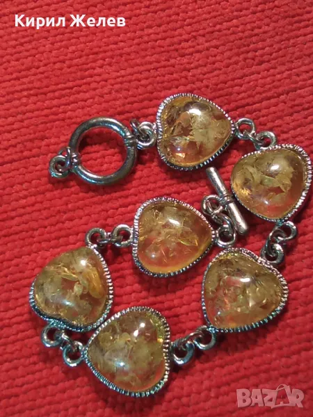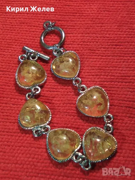 ЕФЕКТНА СРЕБРИСТА ВИНТИДЖ ГРИВНА с КРАСИВ СИНТЕТИЧЕН КЕХЛИБАР 47501