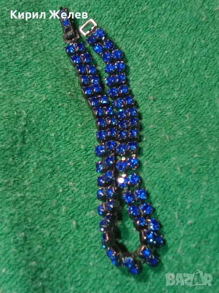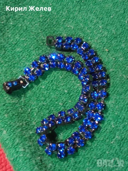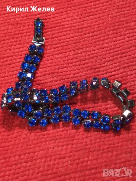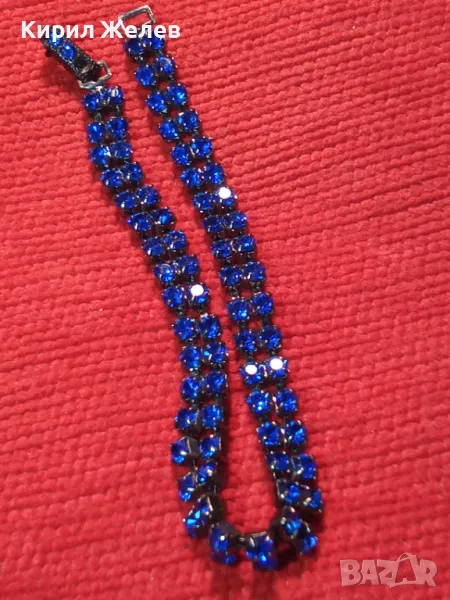 НЕЖНА ПОСРЕБРЕНА ВИНТИДЖ АРТ ГРИВНА с БЛЕСТЯЩИ ФАСЕТИРАНИ СИНИ КРИСТАЛИ 43528