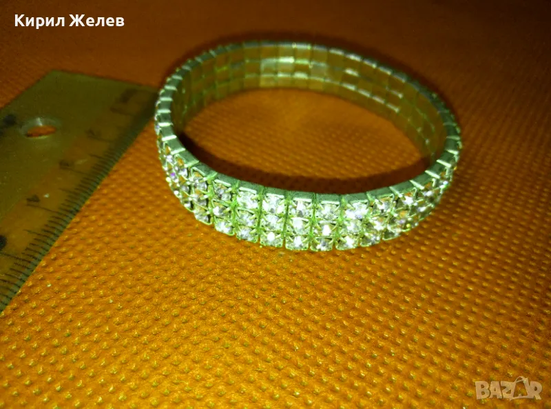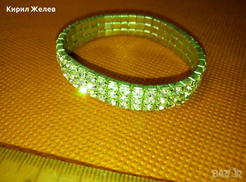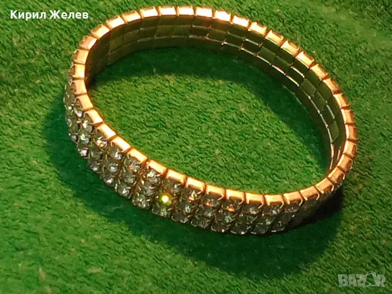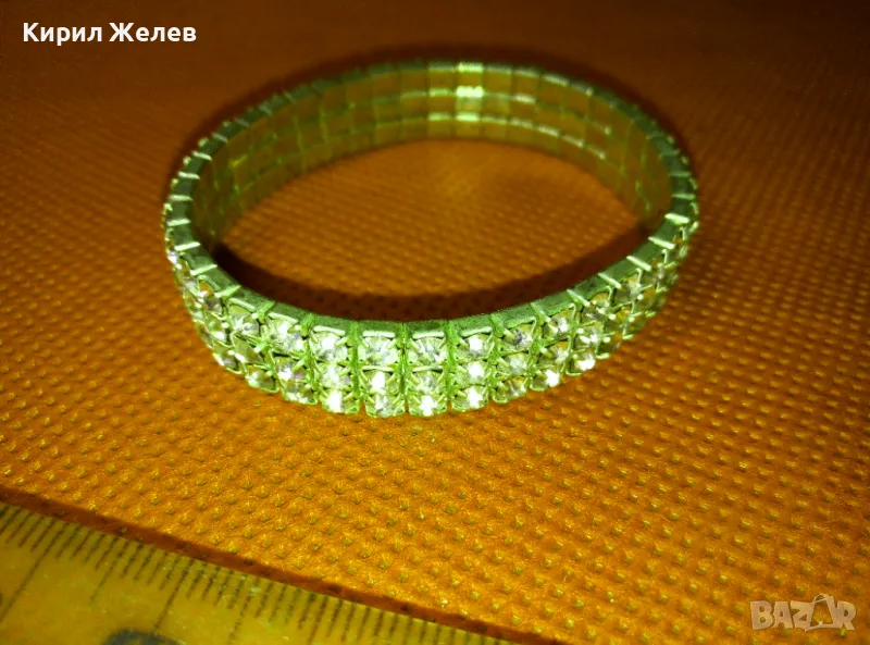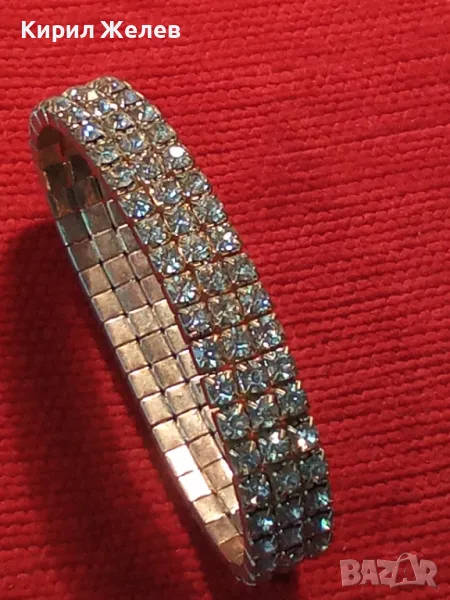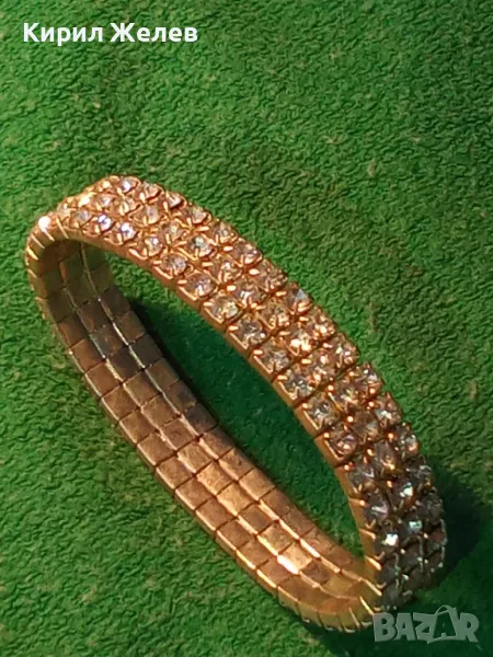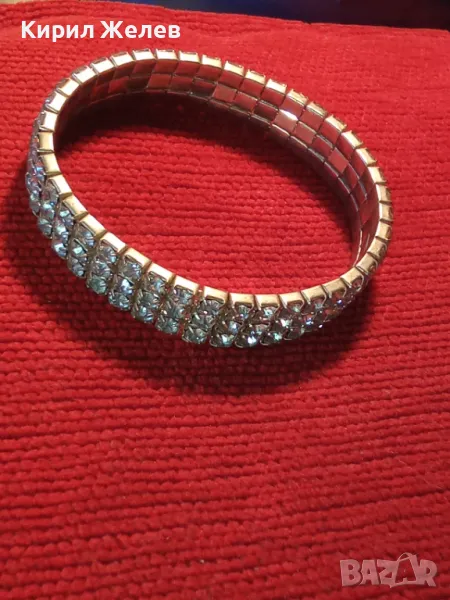 НЕЖНА ПОСРЕБРЕНА РАЗТЕГЛИВА ВИНТИДЖ ГРИВНА с БЛЕСТЯЩИ ФАСЕТИРАНИ КРИСТАЛИ 30833