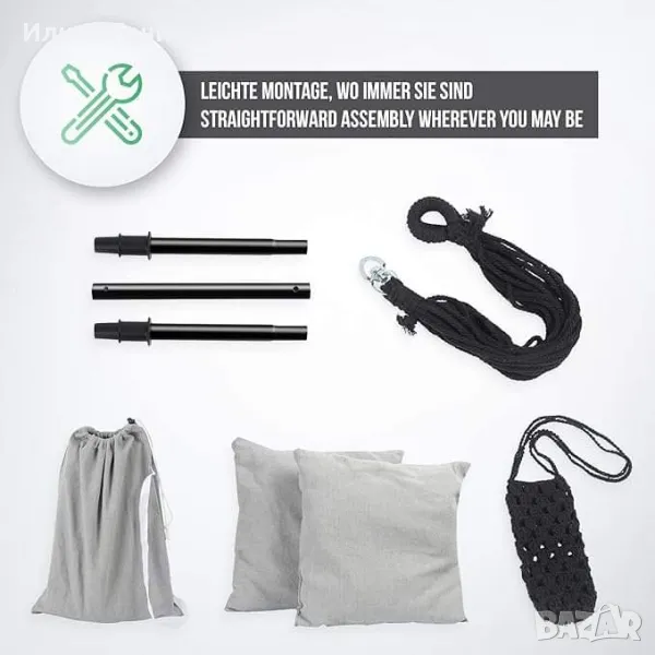⭐⭐⭐⭐⭐ ПОДДРЪЖКА Висящата люлка е изработена от издръжлива смес от памук и полиестер и има подвижни калъфки за възглавници, които могат да се перат в пералня, което прави грижата за този висящ стол лесна
