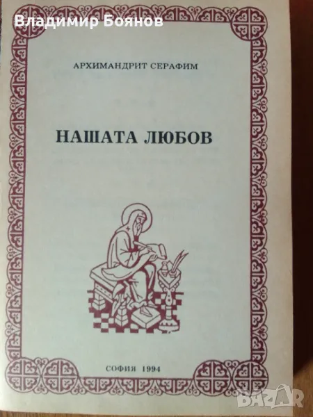 Сборник НАШАТА ЛЮБОВ от архимандрит Серафим, София, 1994 г., меки корици, 384 стр.