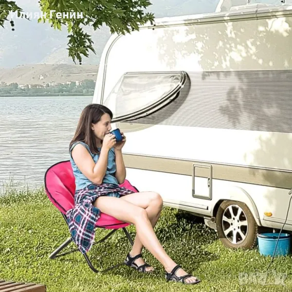 Сгъваем стол за къмпинг/Pic Nic, метална рамка с подплатена седалка, розова тапицерия, 80 x 80 x 75 cm - 100.00лв.