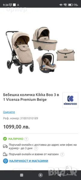 Бебешка количка Kikka Boo 3 в 1 Vicenza Premium Beige