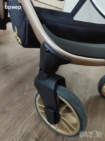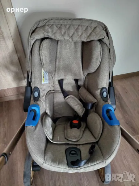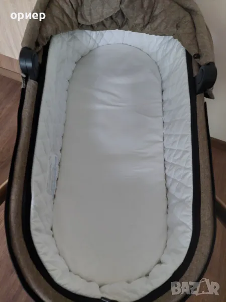 Включени аксесоари: Покривало за крачета на седалката, на коша за новородено, адаптори, чанта, която се трансформира в подложка за повиване.