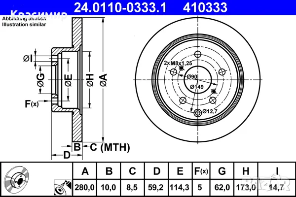 арт номер -24.0110-0333.1 Производител:-ATE Данни за продукта